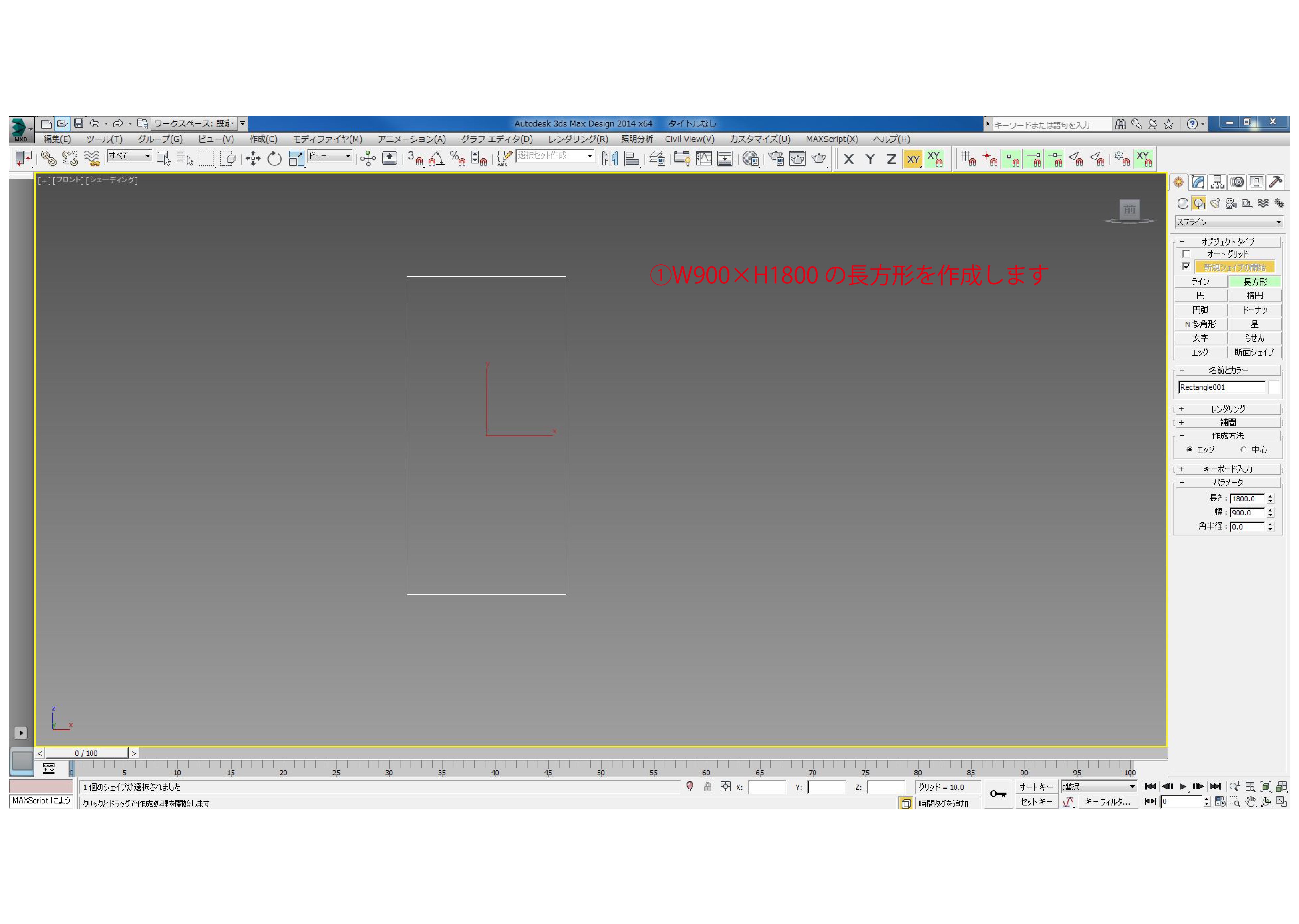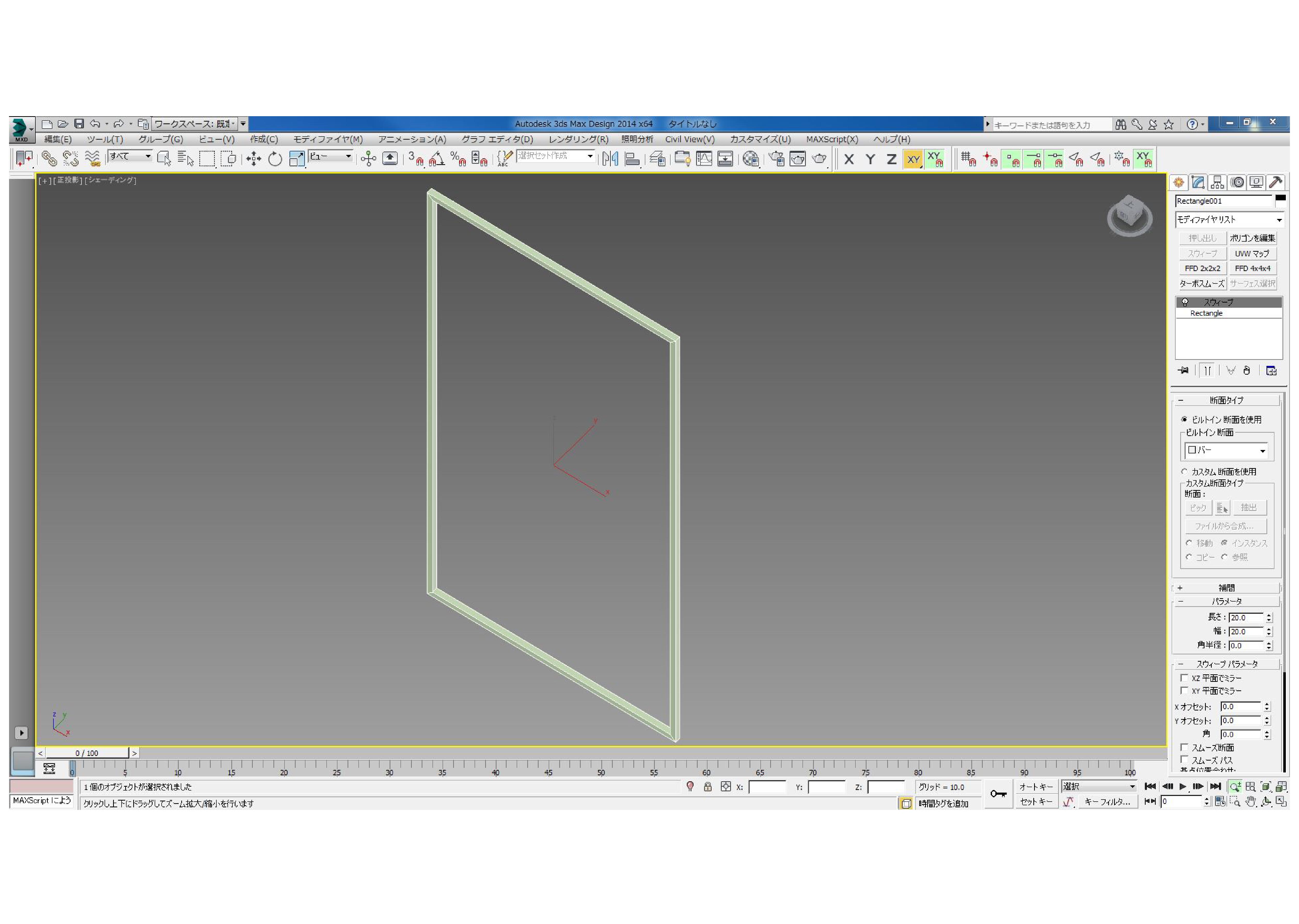 ①「作成」→「平面」面を作成し長さ、幅、セグメントの数値を調整して