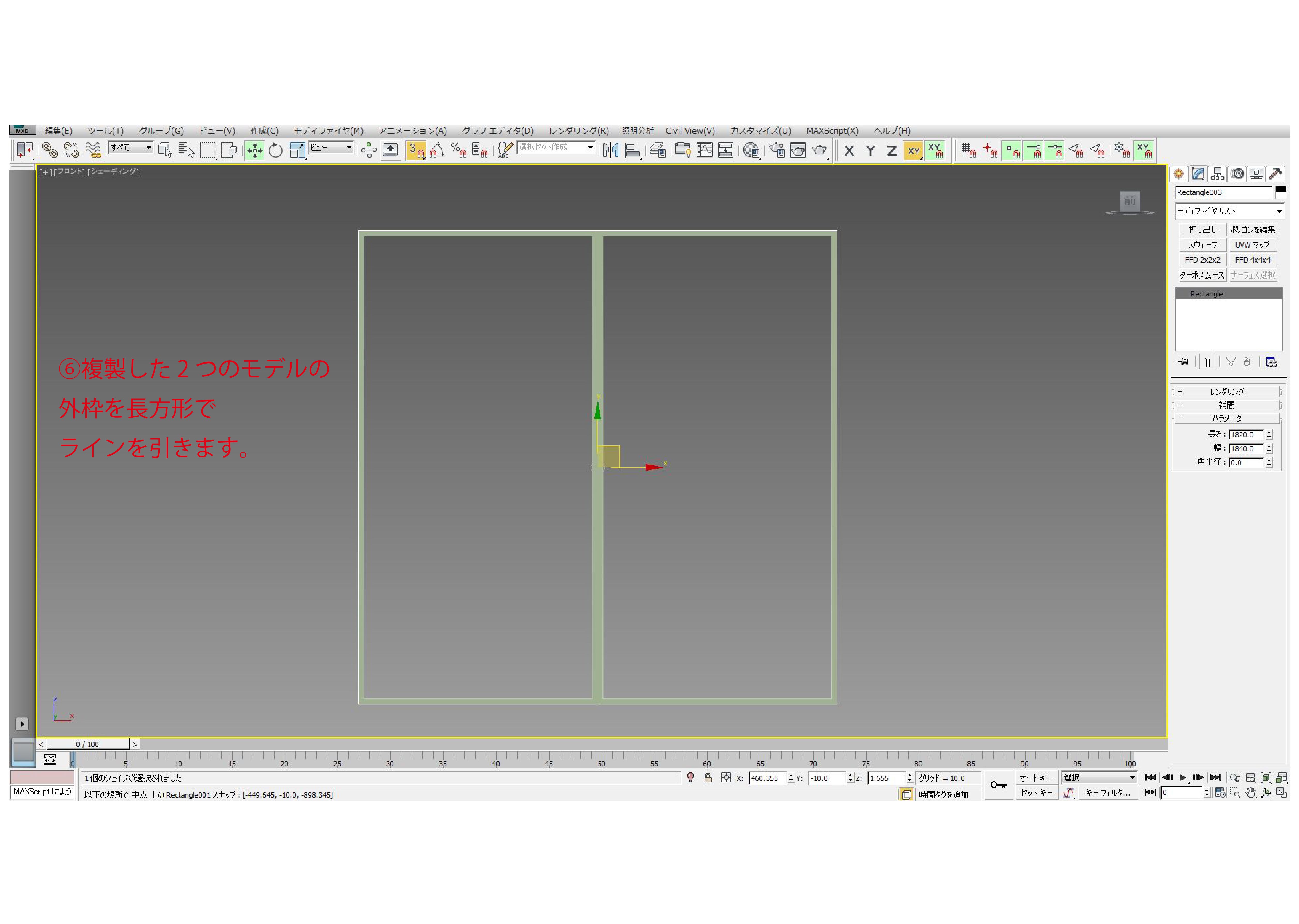 ⑥複製した2つのモデルの外枠を長方形でラインを引きます。
