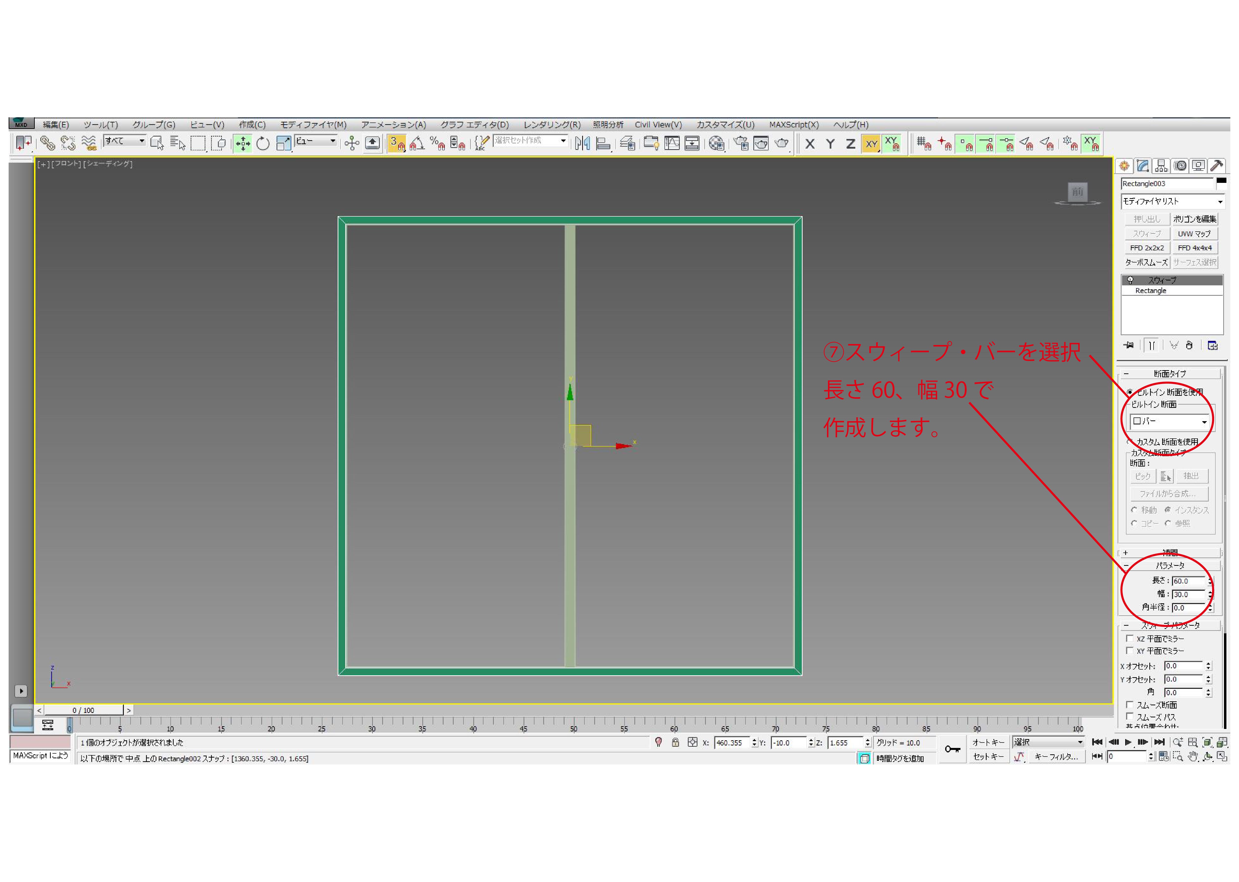 ⑦スウィープ・バーを選択・長さ60、幅30で作成します。