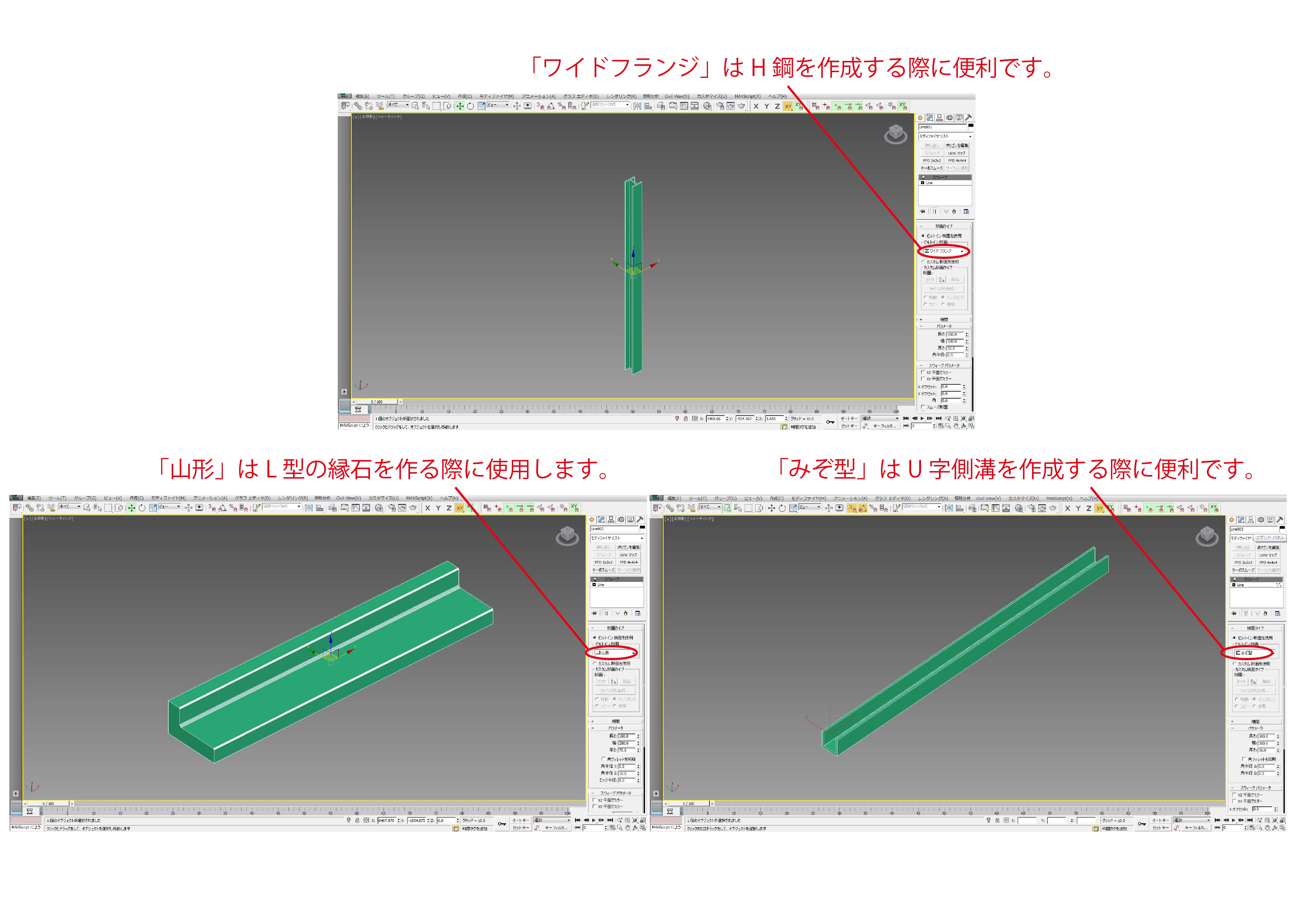 「ワイドフランジ」はH鋼を作成する際に便利です。