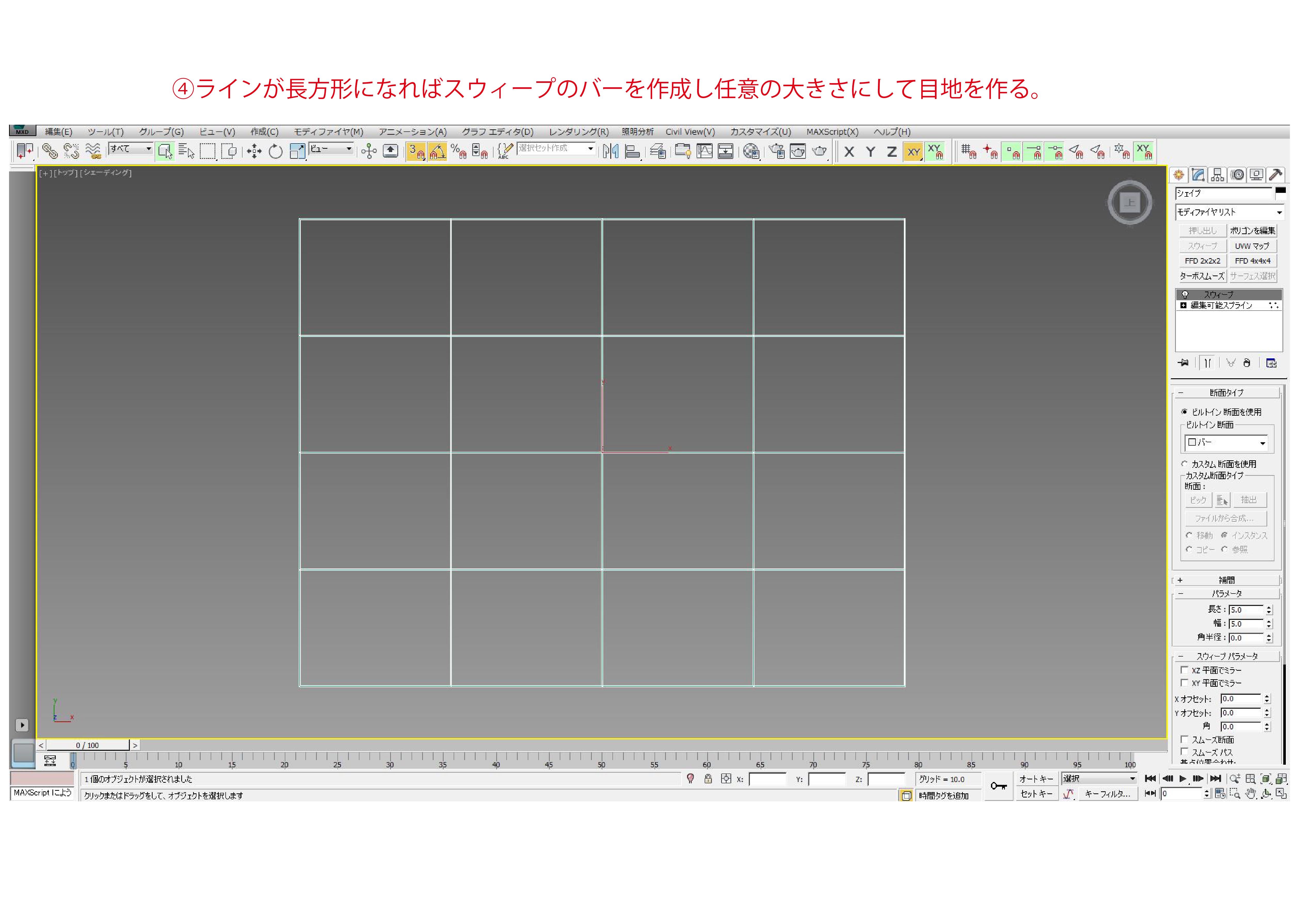 ④ラインが長方形になればスウィープのバーを作成し任意の大きさにして目地を作る。
