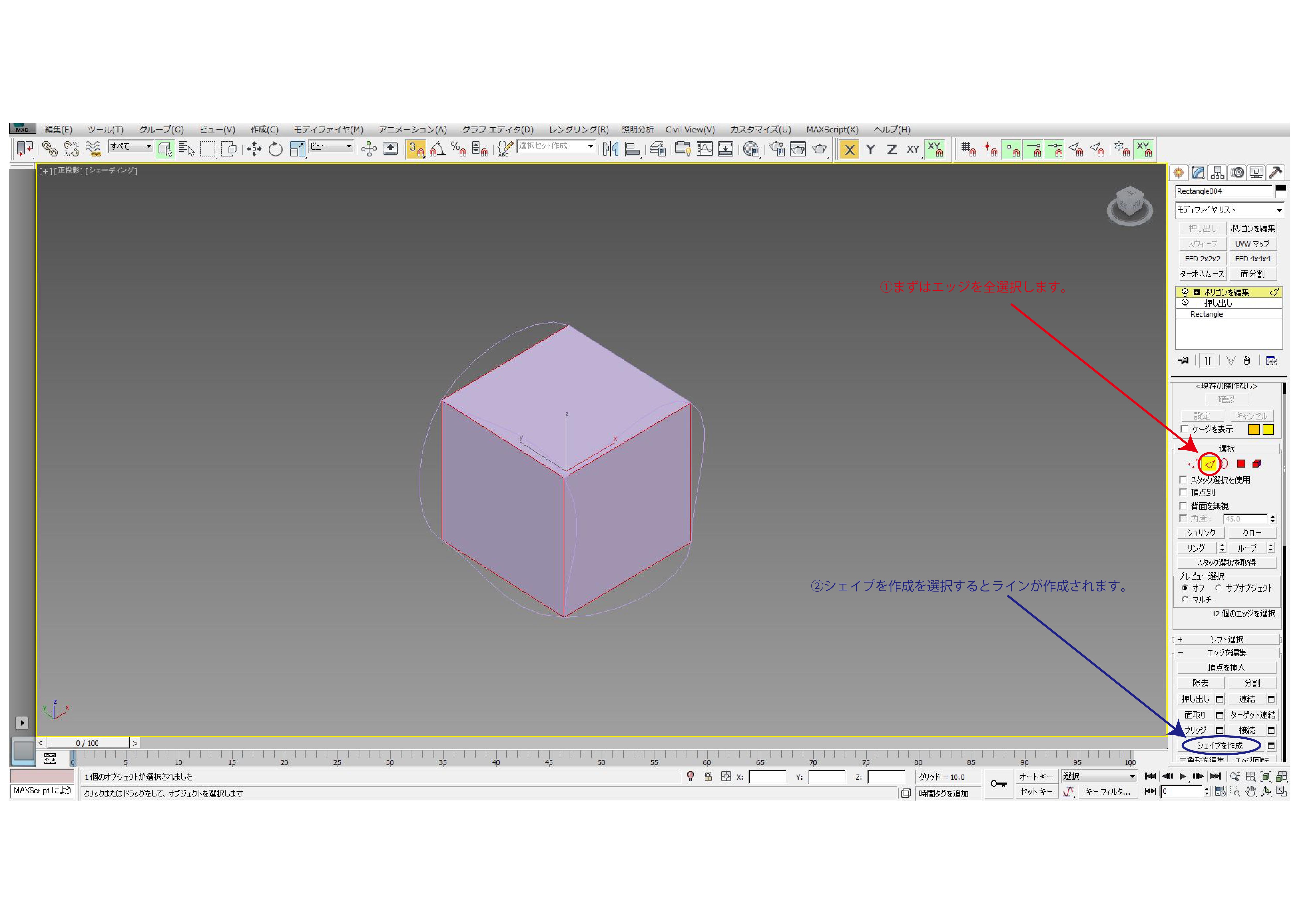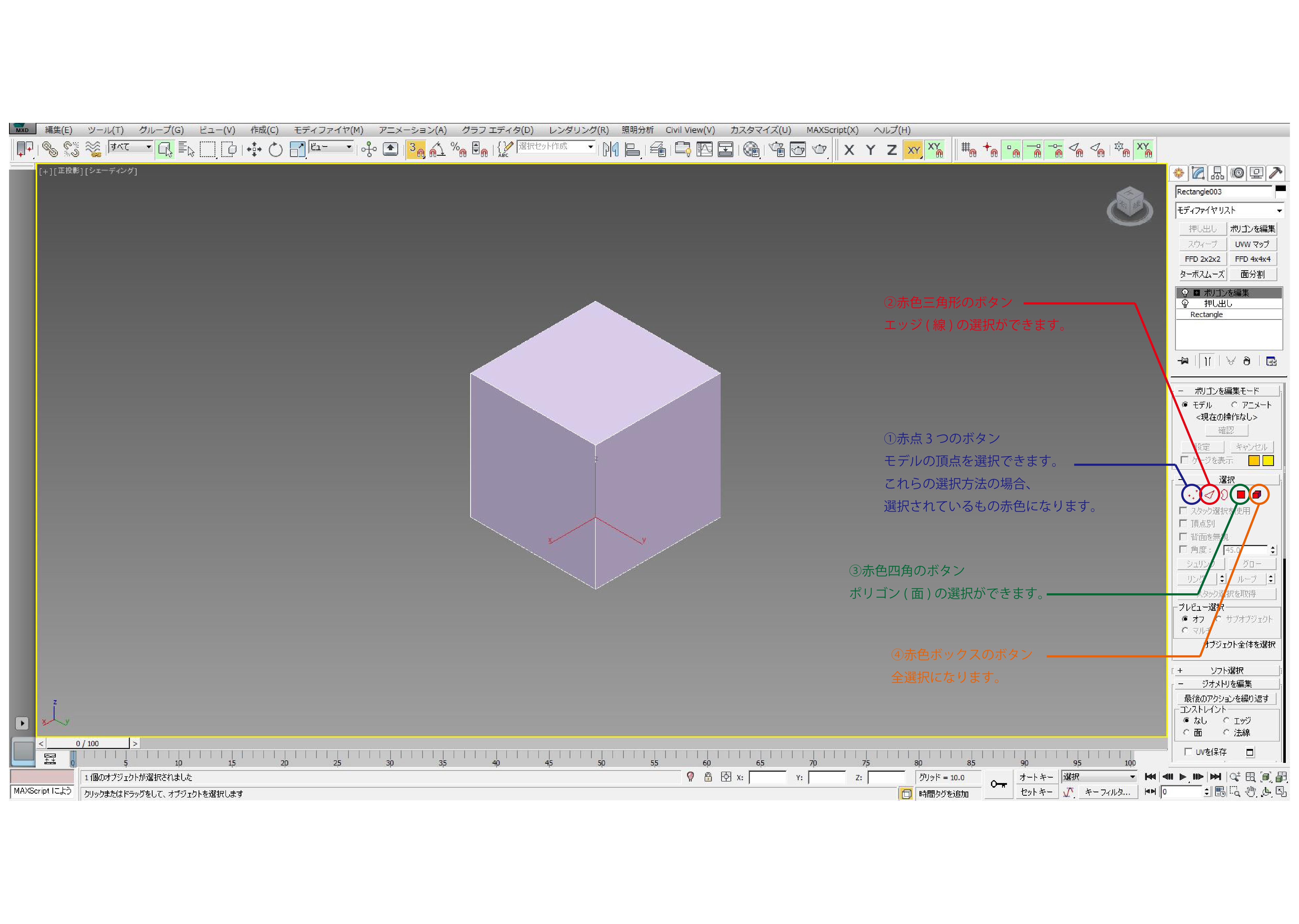 3dsmaxでの「ポリゴンを編集」での選択