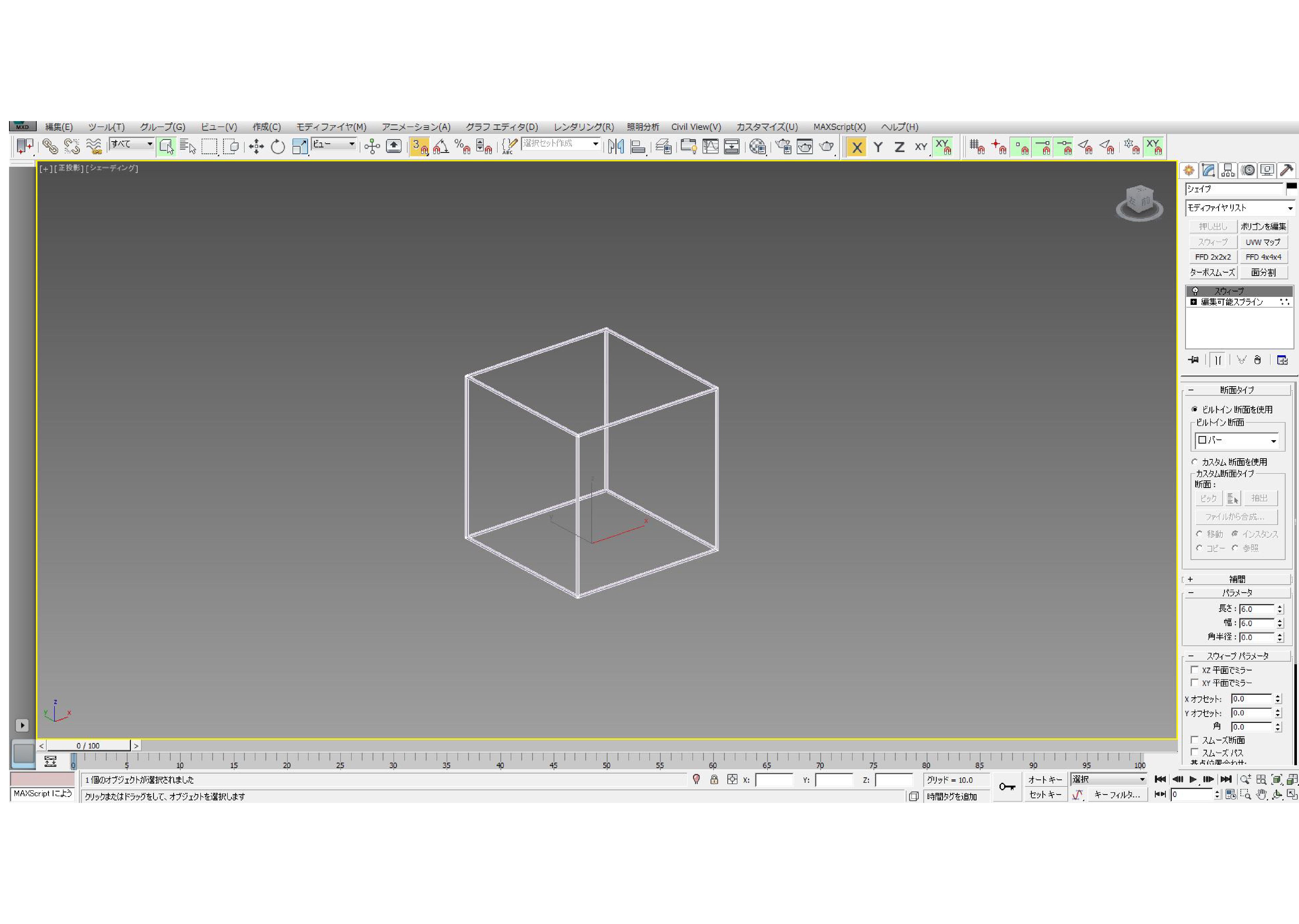 これにスウィープをかけると枠ができます。