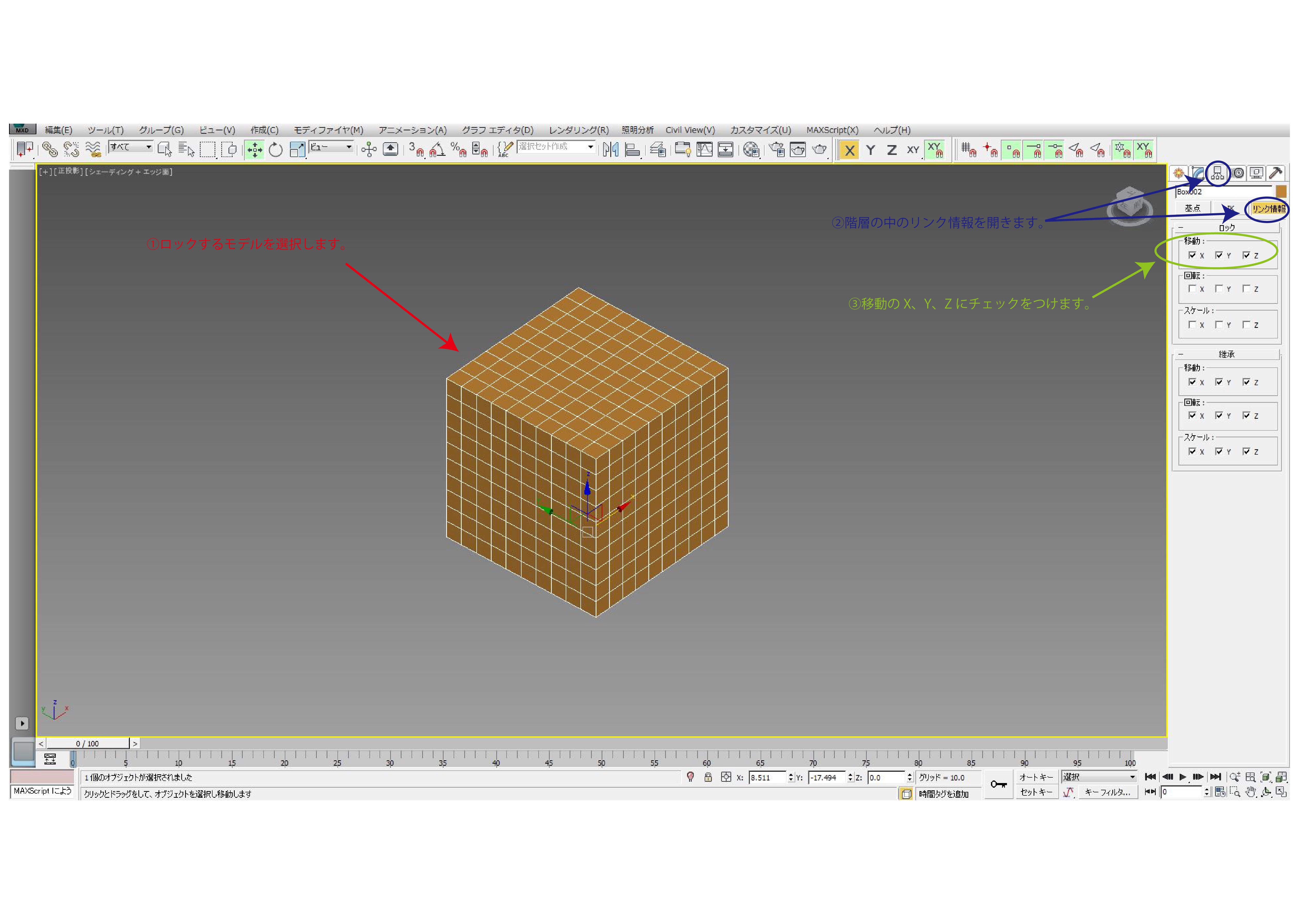 【3dsmax初心者向け】モデルのロック方法