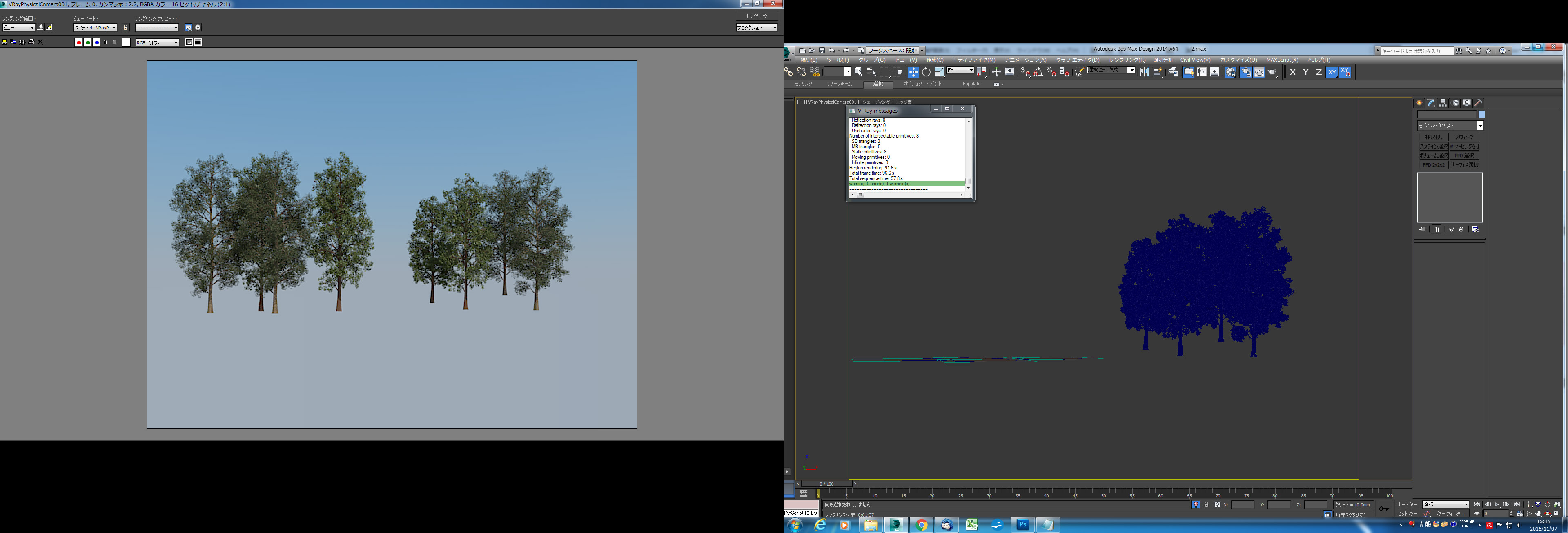使った植物のオブジェクトはポリゴン数が多くて、合成したシーンはかなりデータが重くなり、視点の回転や、オブジェクトの選択など作業がスムーズにできなくなり、パソコンが固まったりすることが予想できます。