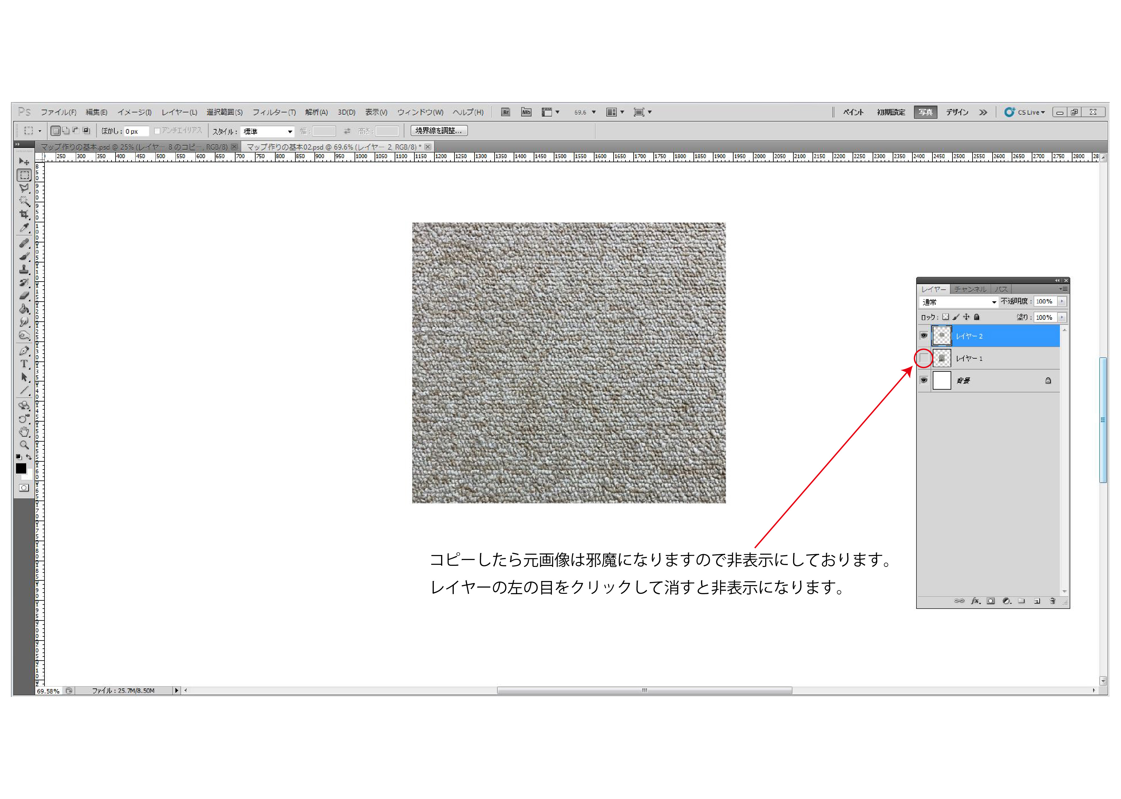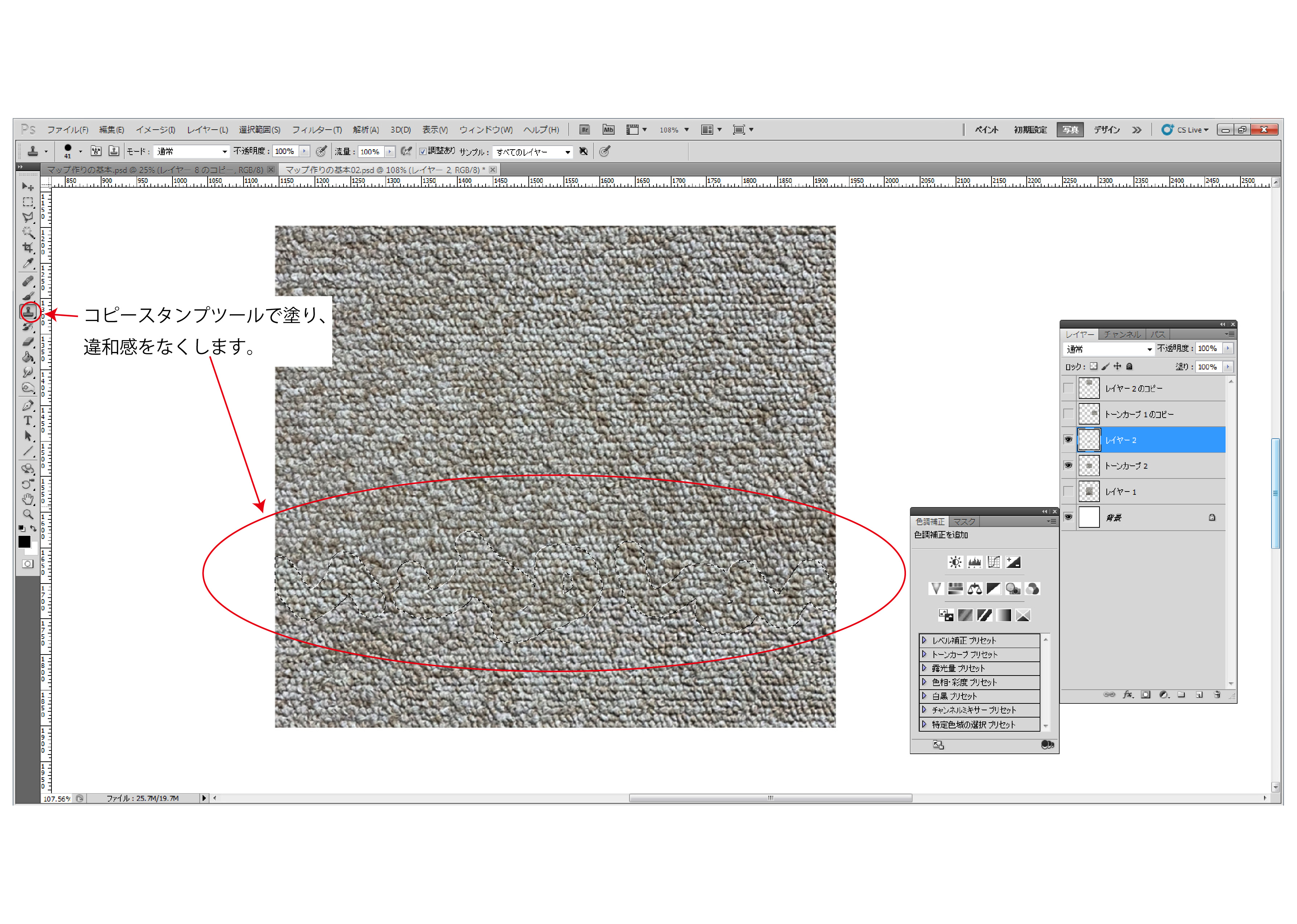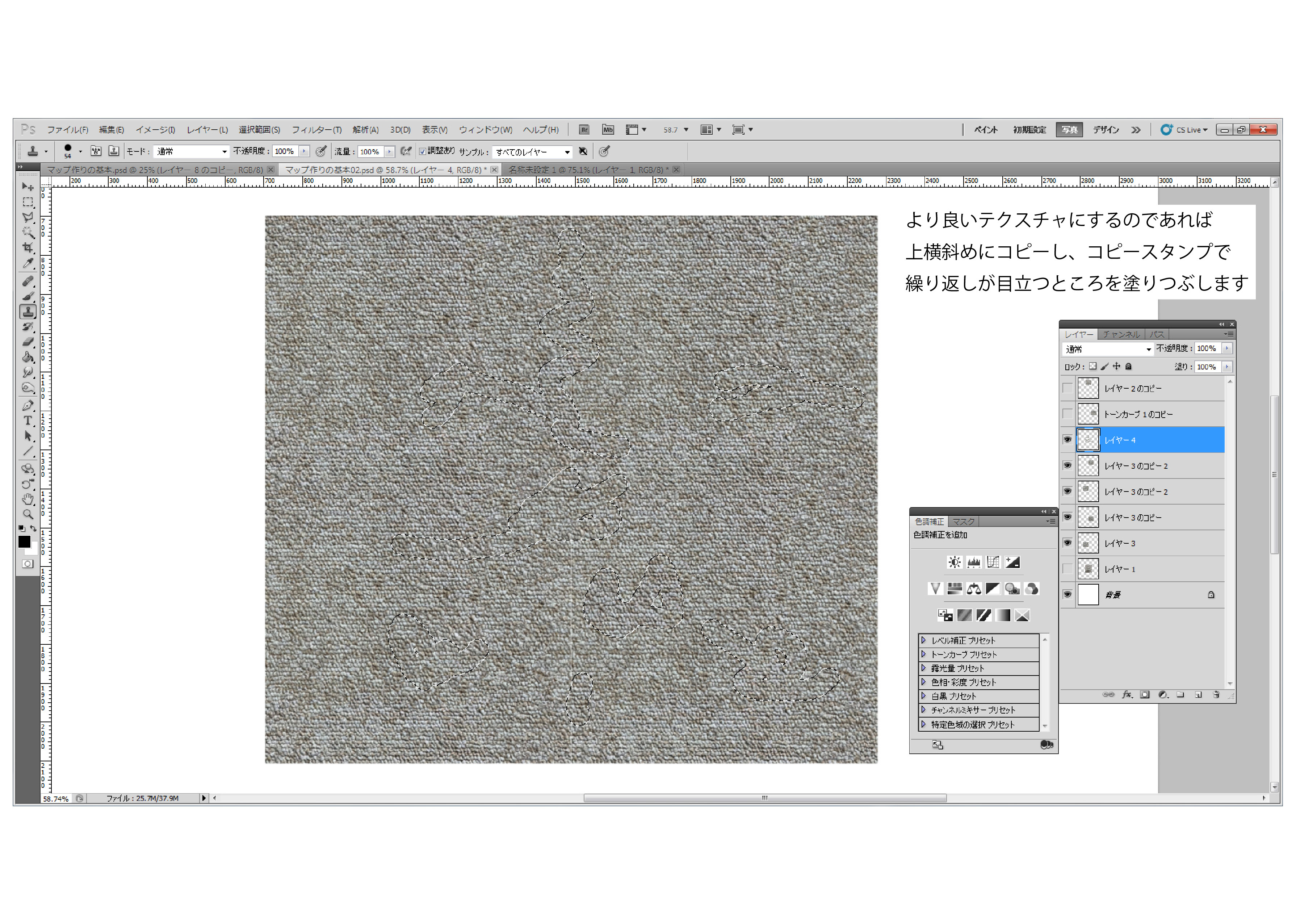 今回はphotoshopを使ってシームレステクスチャの基本的な作り方についてご説明致します。