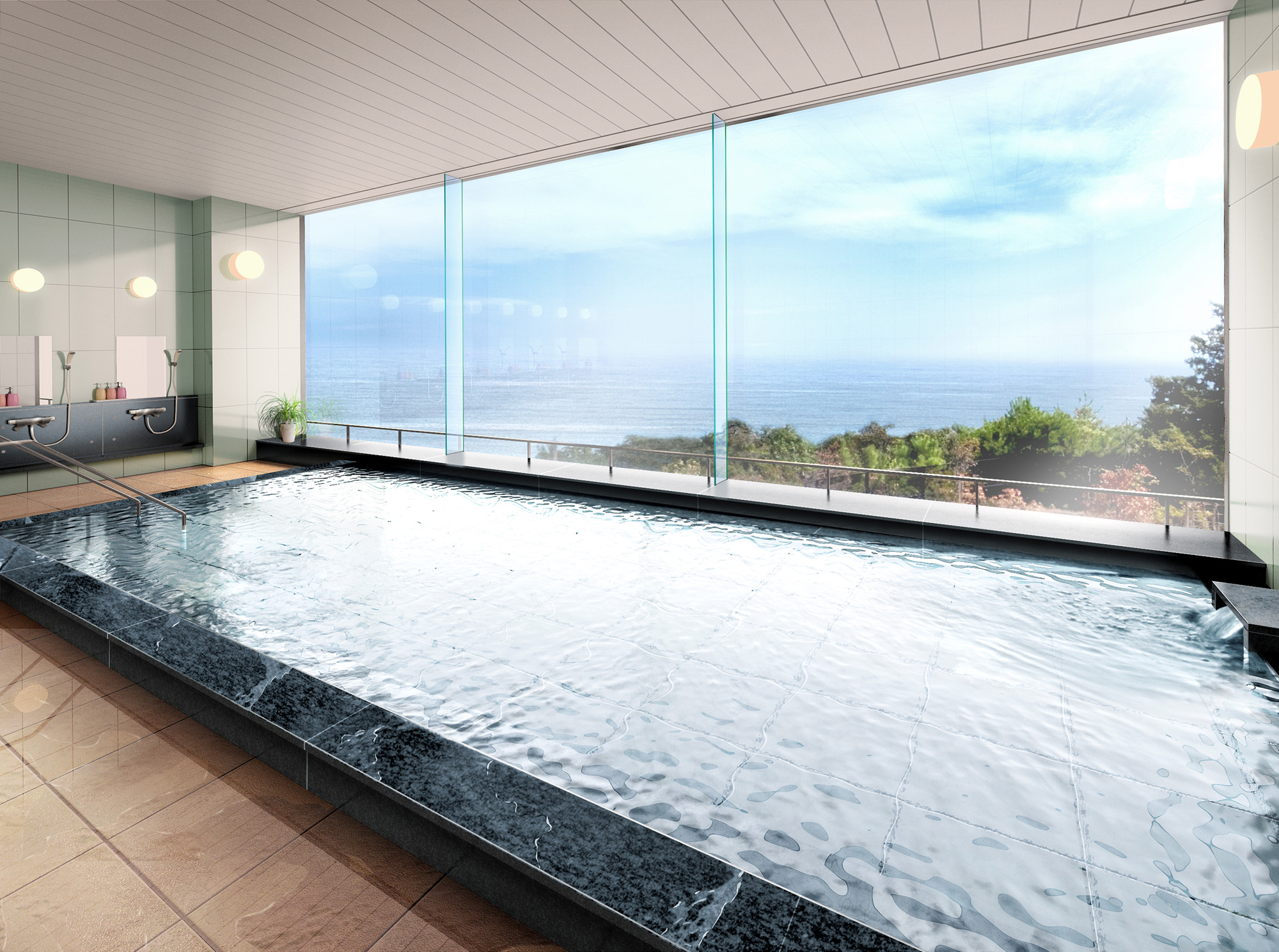 浴場のCGパースで水…