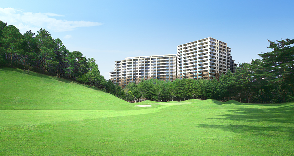 | コメント | 立地を生かした広告ビジュアル、広告手法が決めてとなった。 吉本のお笑いタレント トミーズ雅を採用。 話題をさらった。 DVD(CGアニメーション)も制作。 モデルルーム、TVで放映された。 日生中央駅 側に建つ大規模集合住宅。更にベランダからゴルフ場を見下ろせる。 雄大な景観とすぐ側の緑の絨毯を借景。 立地を生かし、郊外型のリゾート風集合住宅の意図を表現。 |